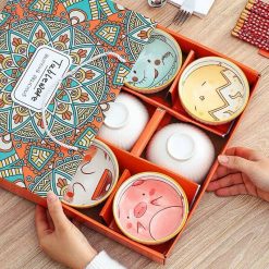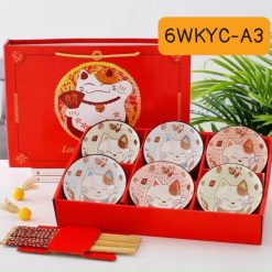 Bộ 6 chén ăn cơm gốm sứ cao cấp in họa tiết đáng yêu, bát ăn cơm cao cấp có hộp đi kèm làm quà tặng cực đẹp