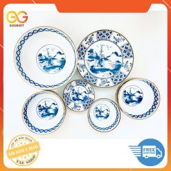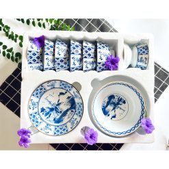 Bộ chén đĩa sứ BÁT TRÀNG cao cấp 10 chi tiết, hoa văn sắc xưa giả cổ đẹp mắt