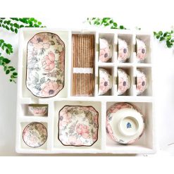 Bộ sản phẩm gồm: Bộ 10 món: 6 chén (bát), 1 dĩa, 1 tô, 2 bát chấm phong cách Nhật Bản