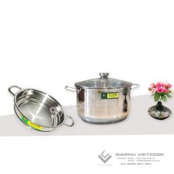 .Nồi có dường kính 30cm , chiều cao nồi 20cm, dung tích 12 lit nước và thân xửng inox 30cm, cao 14cm,