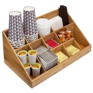 – Khay gỗ tre đựng đồ chia ngăn ly cốc trà sữa để trà cà phê gói và đựng đồ đa năng 11 ngăn Good Homes giúp bạn sắp xếp khoa học, gọn gàng tất cả các nhu yếu phẩm phục vụ nhu cầu làm bếp và văn phòng hàng ngày của bạn như thìa dĩa, dao kéo, gia vị, thực phẩm đóng gói, cà phê, đường, ly cốc, giấy ăn… Đây là một thiết kế đơn giản nhưng khoa học phù hợp lối sống hiện đại.