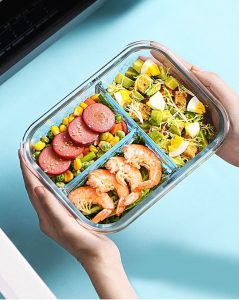1. hộp cơm thủy tinh chia 2 ngăn dung tích 1000ml hoặc hộp cơm thủy tinh chia 3 ngăn dung tích 1000ml