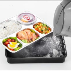 Bộ sản phẩm hộp cơm bao gồm 1hộp 5 ngăn inox 340, khay nhựa PP cao cấp
