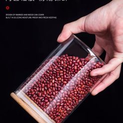 - Lọ thủy tinh chất liệu cao cấp không bọt, trong suốt. Năp gỗ có gioăng silicon kín giúp không lọt khí, bảo quản thực phẩm, đồ ăn hiệu quả.