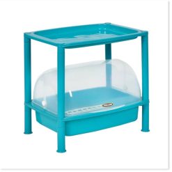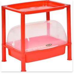 Kệ có lồng đậy bằng nhựa cứng mở ra, úp vào khi cần