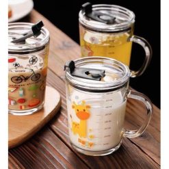 Ly pha sữa thủy tinh cao cấp có vạch đo 350ml, có nắp đậy kèm ống hút silicon – tặng kèm thìa khuấy sữa