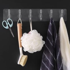 Miếng Dán trong suốt 6 Móc Treo Đồ tiện lợi, dính siêu chắc Dán Tường Siêu Dính Chịu Lực Trong Suốt